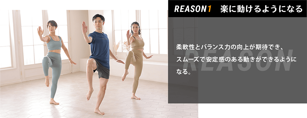 ヨガ、ピラティス、ストレッチ、太極拳、ダンスなどの運動メリットと楽しさを融合させ、カラダとココロのコンディションを整えます。ライフスタイルにルーティンとして取り入れてください。