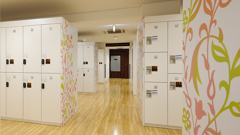 落ち着いた雰囲気で清潔感のあるロッカールームエリアです。適温を保った空間で、ゆったりとご利用いただけます。