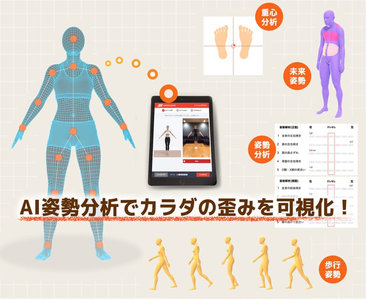シセイカルテは最先端の画像解析技術(AI技術)を活用した姿勢分析システムです。