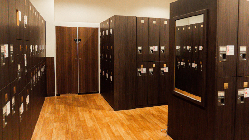 落ち着いた雰囲気で清潔感のあるロッカールームエリアです。適温を保った空間で、ゆったりとご利用いただけます。