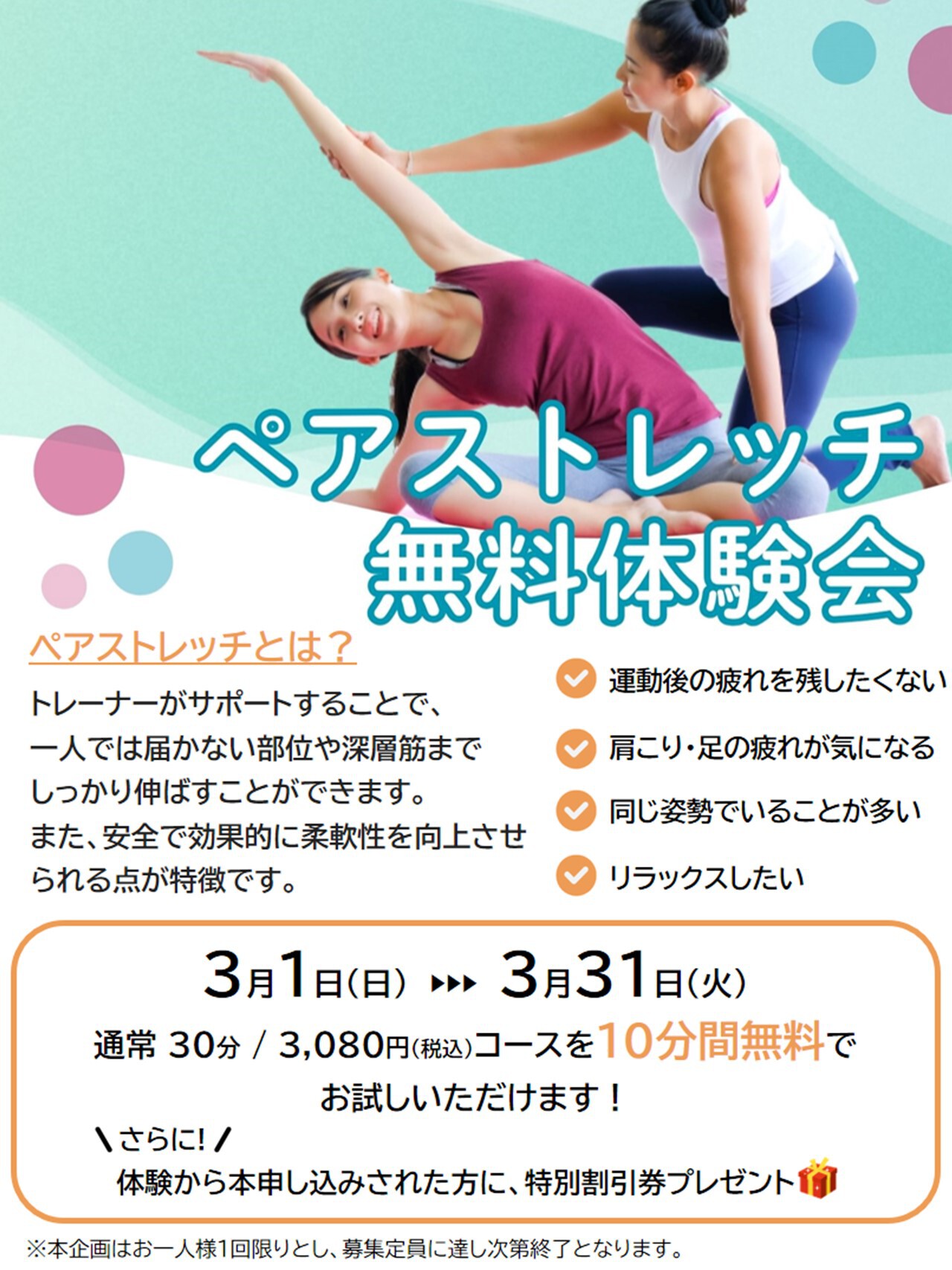 3/1~3/31 限定! 無料体験会を実施します! (1回10分間)