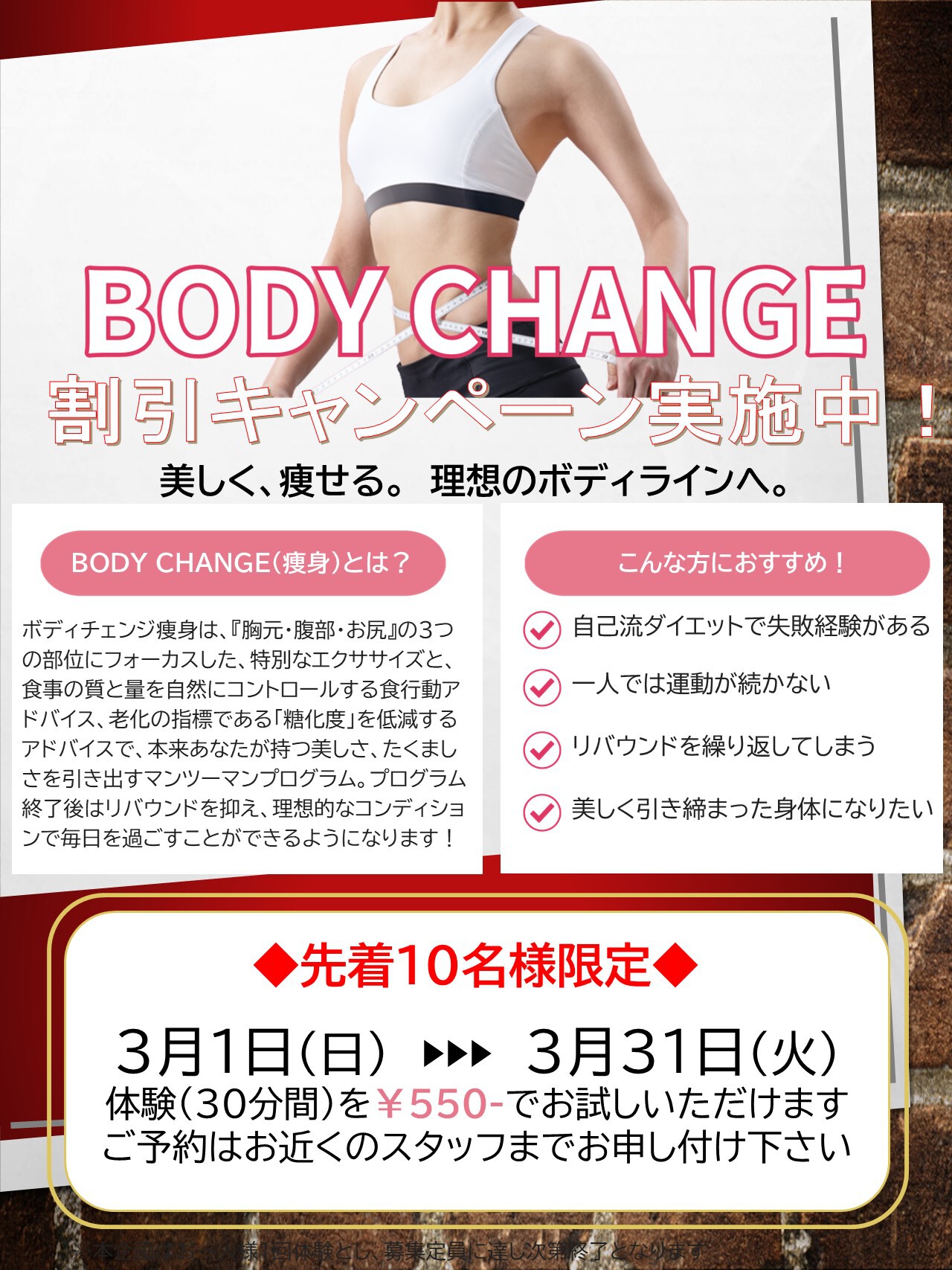 新年度理想のカラダで迎えたい!薄手の季節に向けて身体のボディラインを変えたい方!