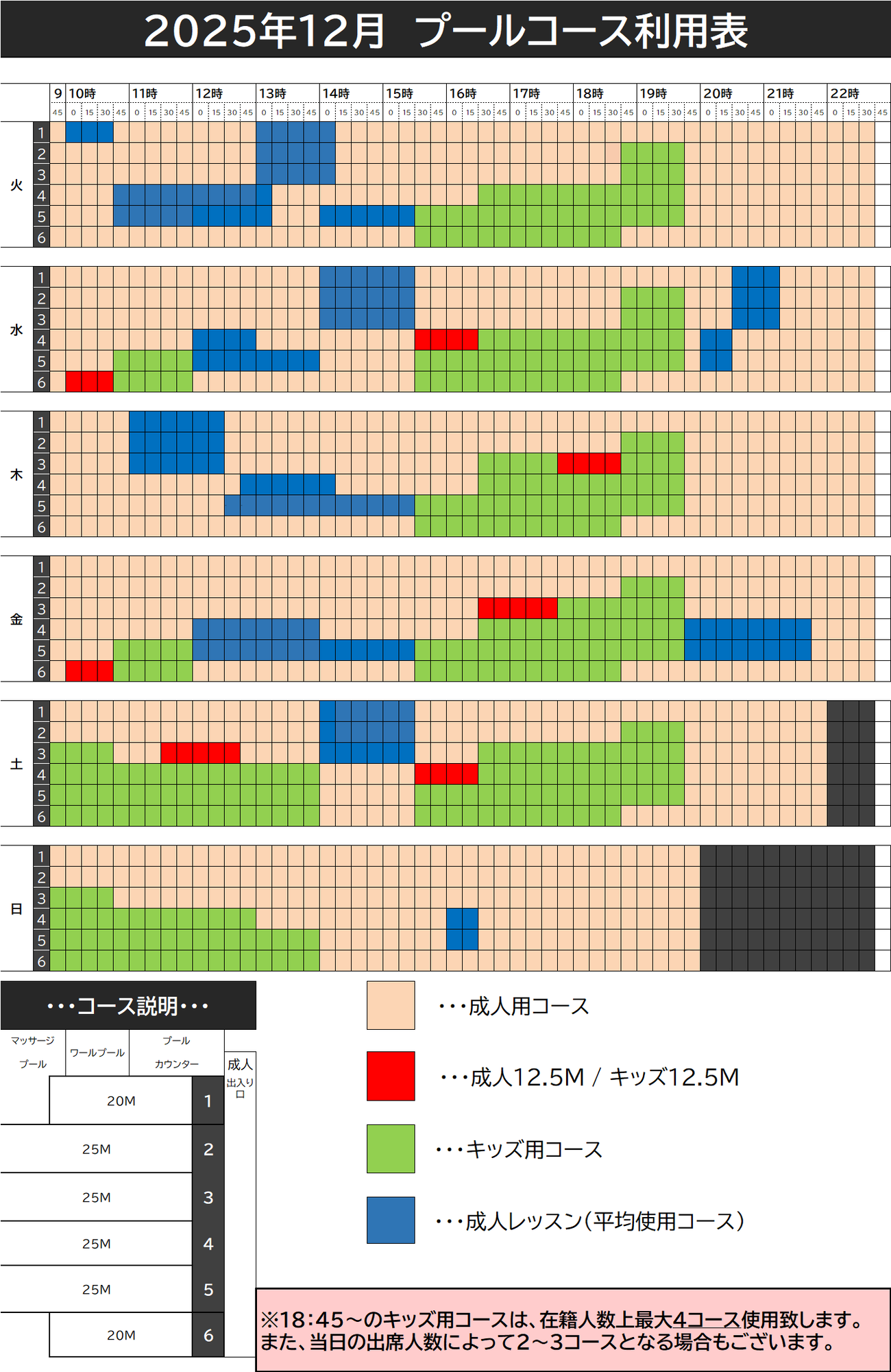 12月度のプールコース利用表をご案内いたします。