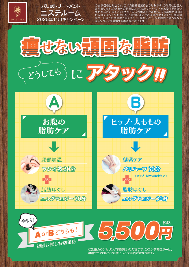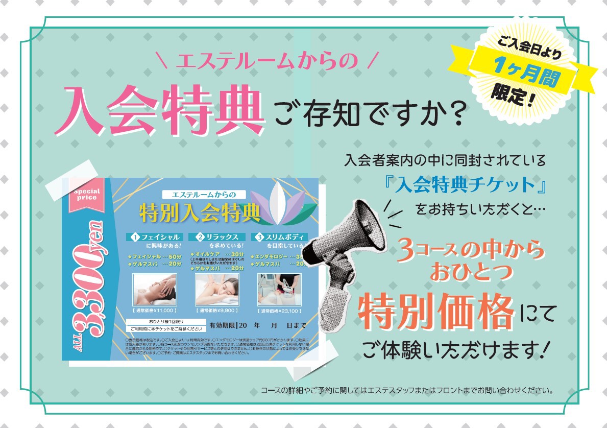 エステルームより今月お得なキャンペーンのご案内です。