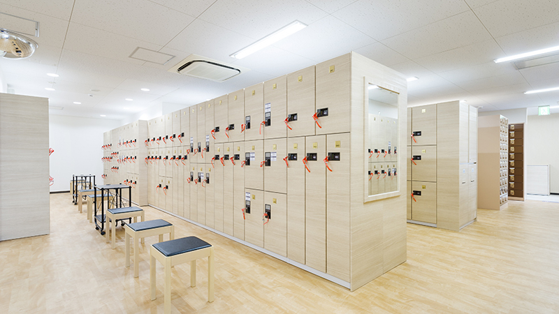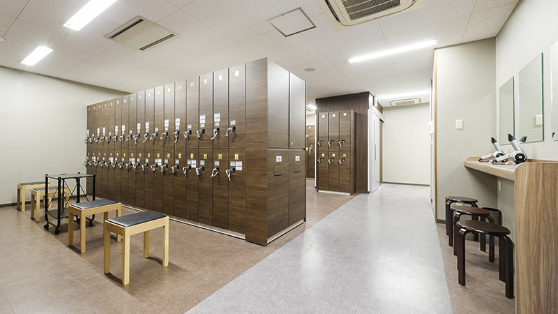 落ち着いた雰囲気で清潔感のあるロッカールームエリアです。適温を保った空間で、ゆったりとご利用いただけます。