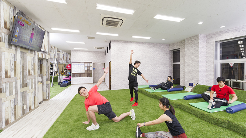 目的やカラダの状態にあわせてトレーニングが出来るように、ジムエリアは目的別のゾーンに分かれています。一人で集中してマシントレーニングを楽しんだり、みんなとプログラムで気持ちよく汗を流したり、使い方は自由自在です。