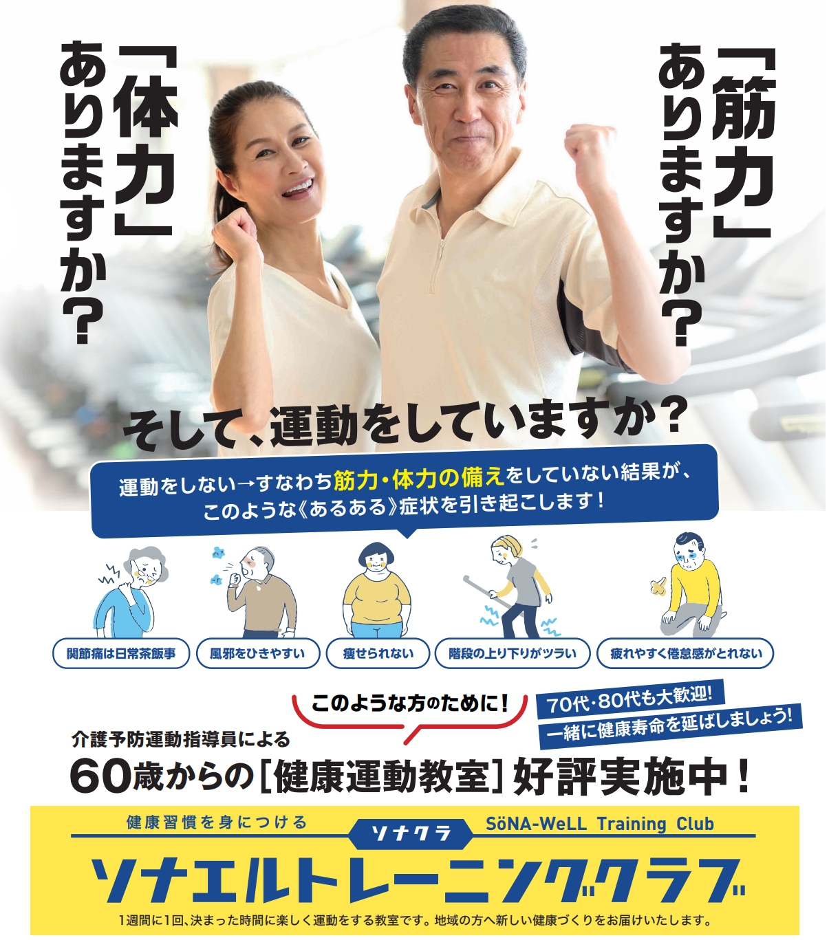 そんな不安を抱える60歳以上の方へ、運動教室を開講いたします!