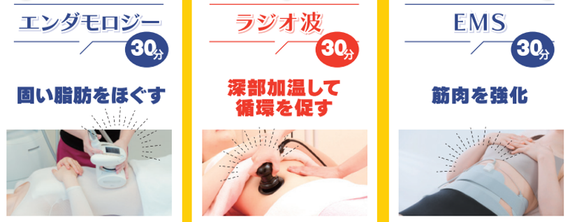 ・エンダモロジー30分・ラジオ波30分・EMS30分