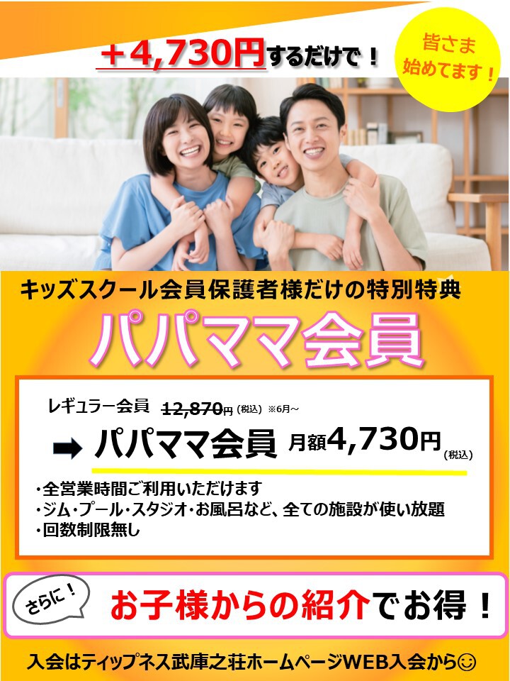 ティップネス武庫之荘店のキッズスクールに通われているお子様のパパママなら、
