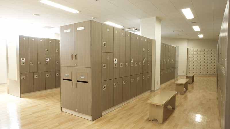 落ち着いた雰囲気で清潔感のあるロッカールームエリアです。適温を保った空間で、ゆったりとご利用いただけます。