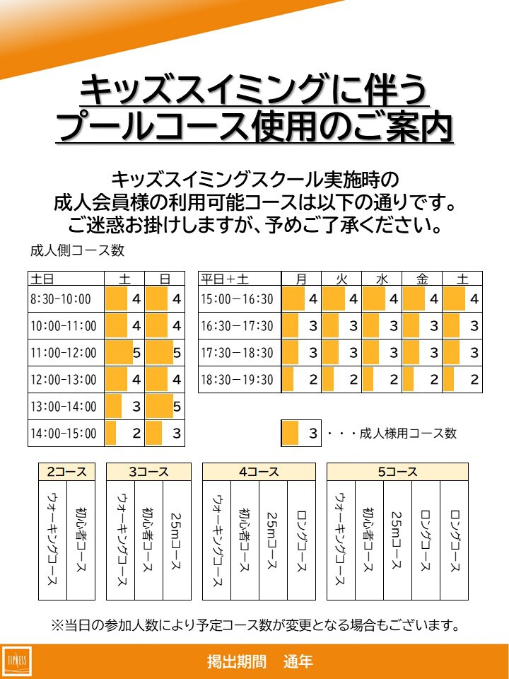 【綾瀬店】プール内成人利用可能コースのご案内
