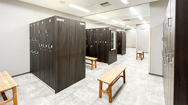 落ち着いた雰囲気で清潔感のあるロッカールームエリアです。適温を保った空間で、ゆったりとご利用いただけます。