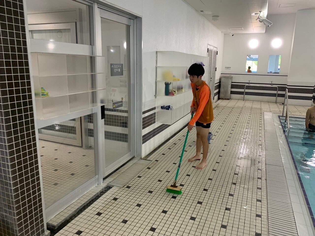 その他にもジムでの清掃業務、プールでの水質検査など、スタッフが普段実施している仕事を手伝ってもらいました。