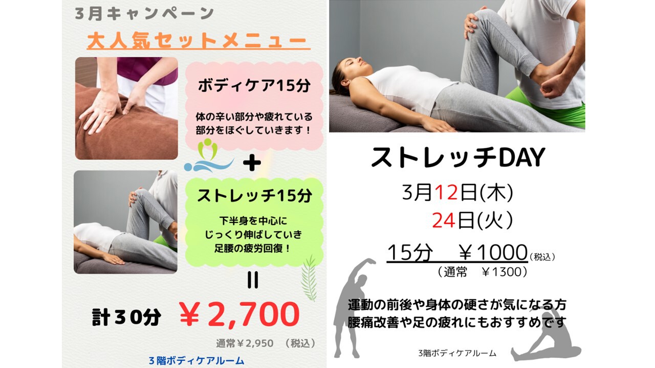 お気軽に3階ボディケアルームにお立ち寄りください!
