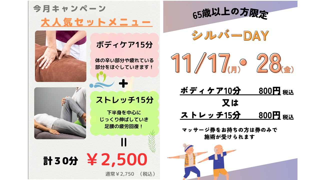 2セット合計30分 通常2,750円 → 2,500円!(税込)