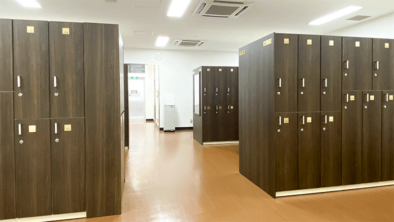 落ち着いた雰囲気で清潔感のあるロッカールームエリアです。適温を保った空間で、ゆったりとご利用いただけます。