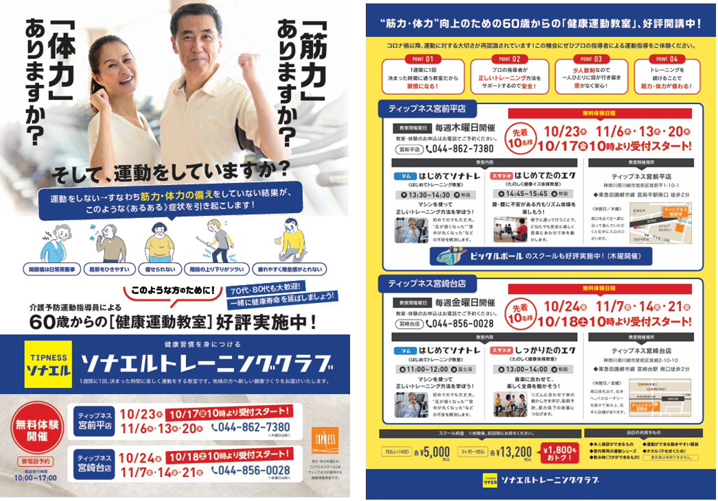 申込は、お電話にて「ソナエルクラブの体験申込」とお伝えください。