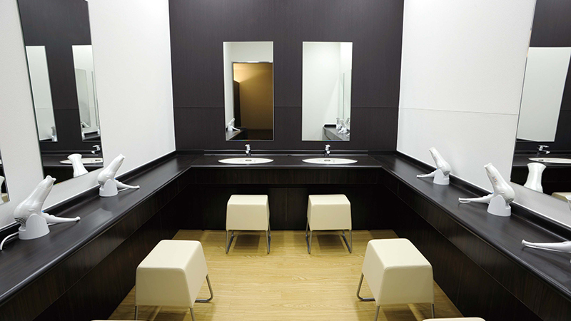 落ち着いた雰囲気で清潔感のあるロッカールームエリアです。適温を保った空間で、ゆったりとご利用いただけます。