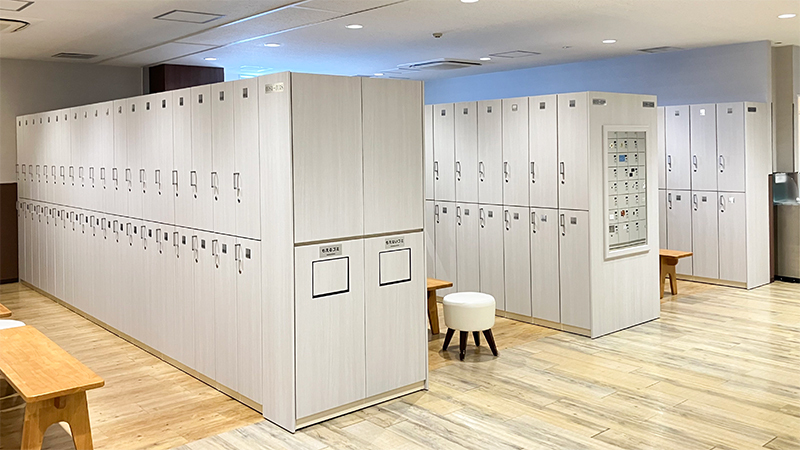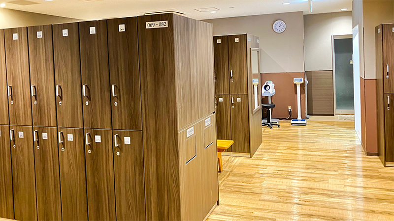 落ち着いた雰囲気で清潔感のあるロッカールームエリアです。適温を保った空間で、ゆったりとご利用いただけます。