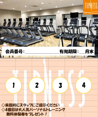 入会後、来館数に応じて最大28回の来館で4つのプチギフトや無料パーソナルトレーニングをプレゼント!