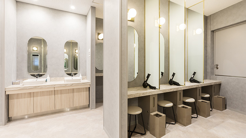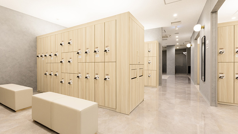 落ち着いた雰囲気で清潔感のあるロッカールームエリアです。