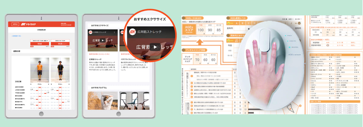 専用AIシステムであなたの姿勢タイプをチェック 糖化度の測定で身体の細胞老化を指標化 結果に基づき目標に向けたトレーニングを提案